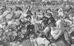 Princeton vs. Rutgers, 1869 -- the first college football game in history. For more on Princeton pigskin history, see the university's official football site. ` |