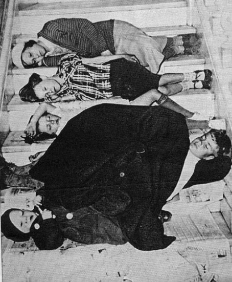 A family of protesters makes themselves at home on a staircase at the State House during the protest of 1936. |