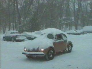 The Blizzard of '96 amazed the entire East Coast. Here, a Bug tries to navigate the streets of suburban Boston. |